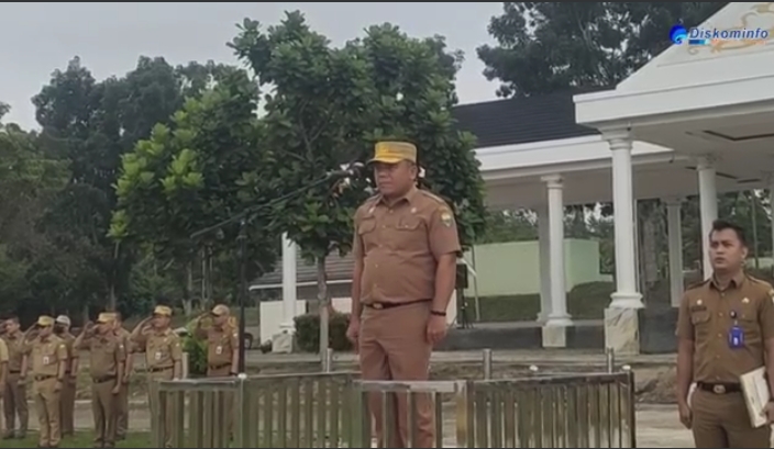 MuaroJambi - Sekretaris Daerah Kabupaten Muaro Jambi Budi Hartono, S.Sos, MT kembali menjadi inspektur upacara pada apel senin gabungan yang diikuti seluruh pegawai ASN dan pegawai Non ASN di lingkup Pemerintah Kabupaten Muaro Jambi.Senin 5/09/2022 pagi