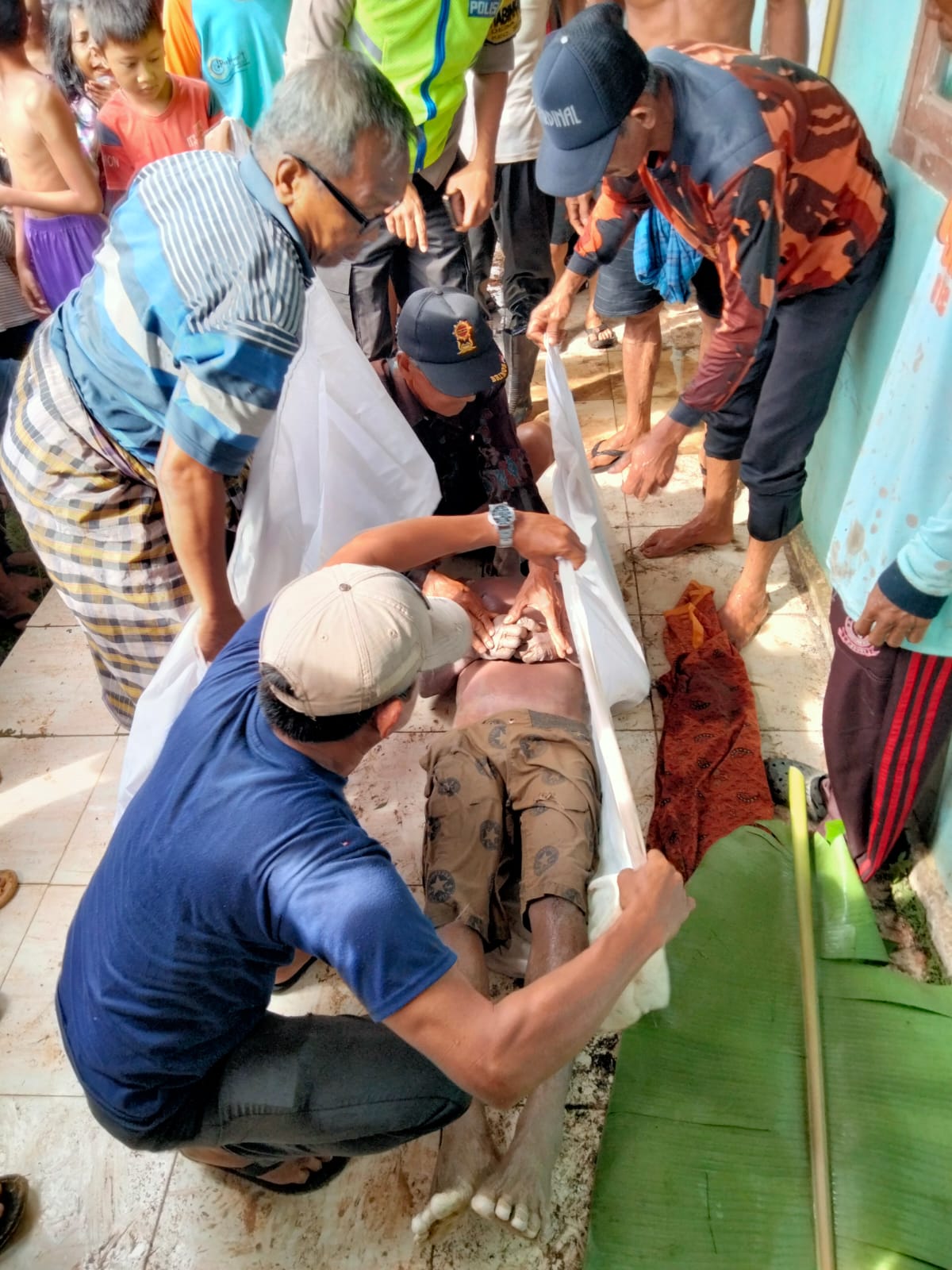 Korban bernama,Mizan 69 tahun warga RT 06 sengkati kecil kecamatan Mersam kabupaten Batang hari Jambi,