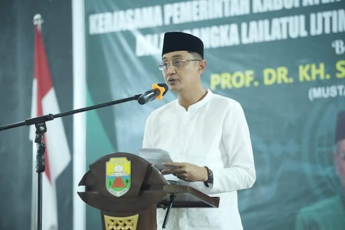 MuaroJambi-Pejabat Bupati Muaro Jambi di dampingi sekda Budhi Hartono dan para OPD lingkup pemerintahan kabupaten Muaro menghadiri Lailatul ijtima PCNU kabupaten Muaro Jambi di gedung serbaguna perkantoran Bupati Bukit cinto kenang Senin malam 20/11/2023.